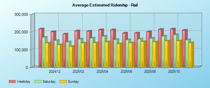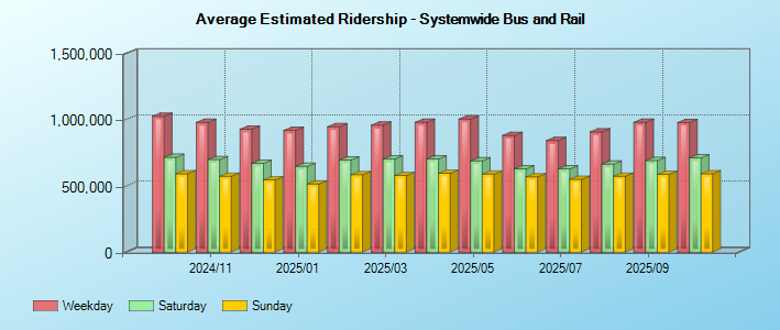 | Period | Estimated Weekday Ridership | Estimated Saturday Ridership | Estimated Sunday Ridership |