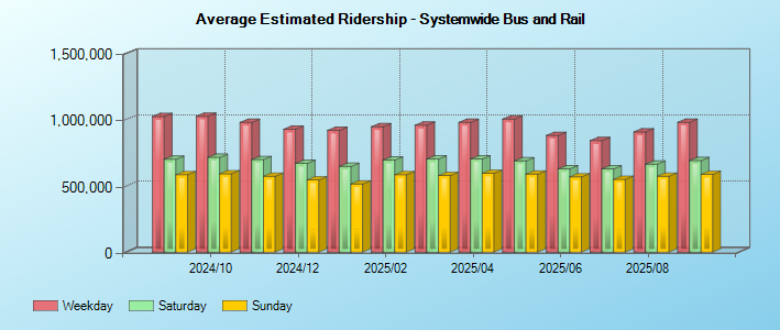 Day Type | Estimated Ridership | Average Passenger Miles | Day Count | Total Estimated Ridership | Total Passenger Miles |